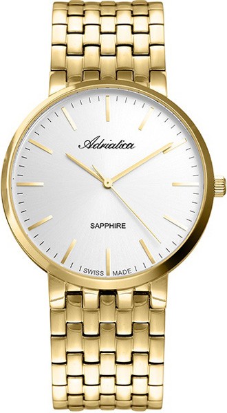 Корпус диаметром 40 мм и браслет выполнены из нержавеющей стали 316L с PVD-покрытием золотого цвета. Часы кварцевые. Стекло сапфировое. Циферблат стального цвета. Водозащита 50 метров. Функции: часы, минуты, секунды.