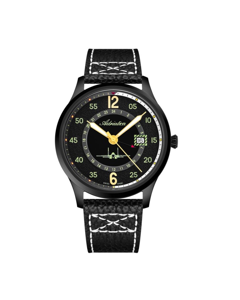 Корпус диаметром 43 мм выполнен из нержавеющей стали 316L с черным PVD-покрытием. Часы кварцевые. Стекло минеральное. Циферблат черного цвета. Стрелки часов покрыты люминесцентным составом,что обеспечивает их свечение в темноте. Водозащита 50 метров. Черный кожаный ремень . Функции: часы, минуты, секунды, дата.