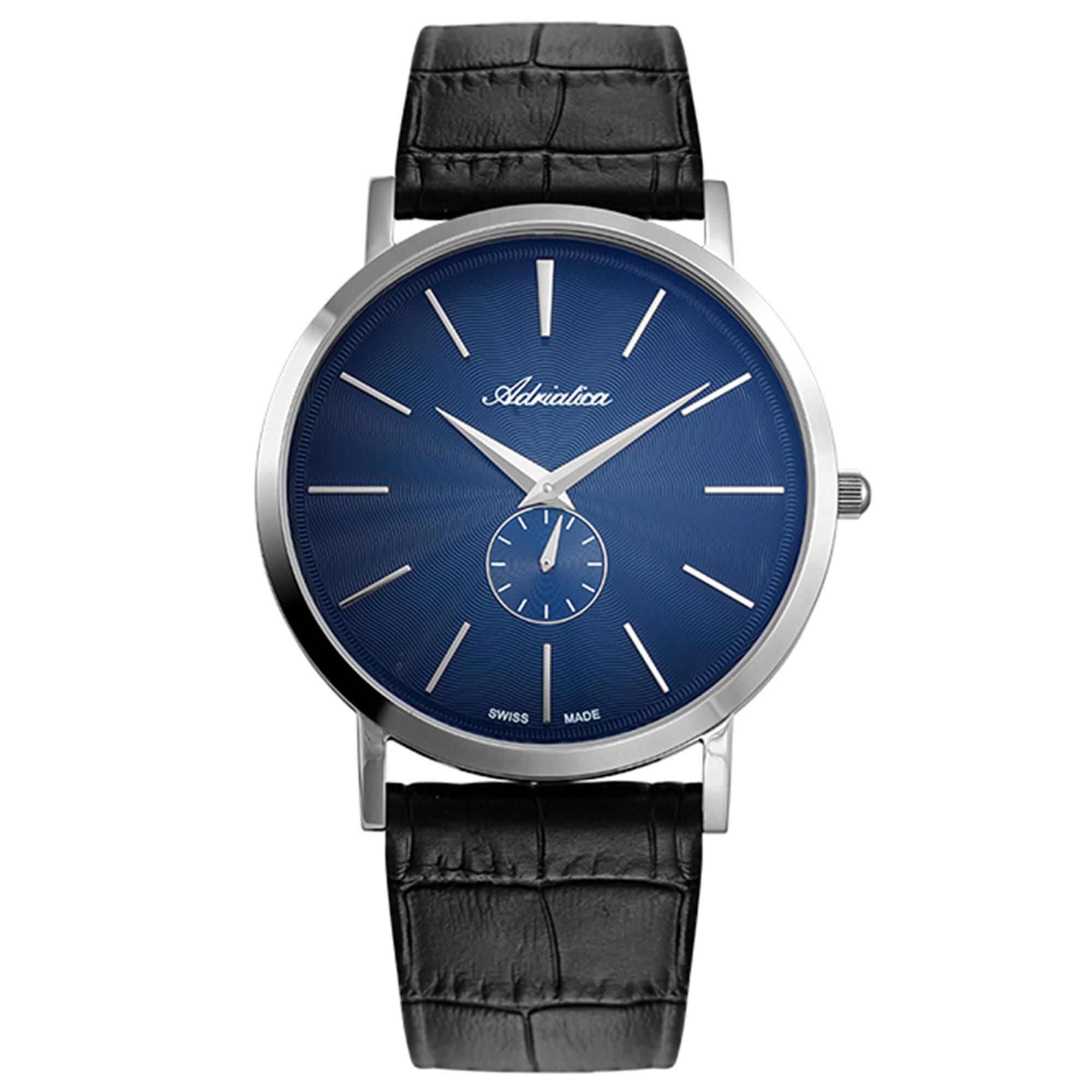 Корпус диаметром 41 мм и выполнен из нержавеющей стали 316L. Часы кварцевые. Стекло минеральное.Синий циферблат. Водозащита 30 метров. Черный кожаный ремень. Функции: часы, минуты, секунды.