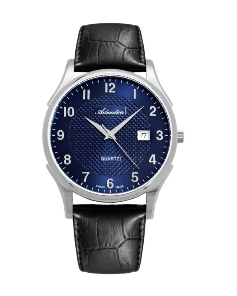 Корпус диаметром 41 мм выполнен из нержавеющей стали 316L. Часы кварцевые. Стекло минеральное. Циферблат синего цвета. Черный кожаный ремень. Водозащита 30 метров. Функции: часы, минуты, секунды, дата.