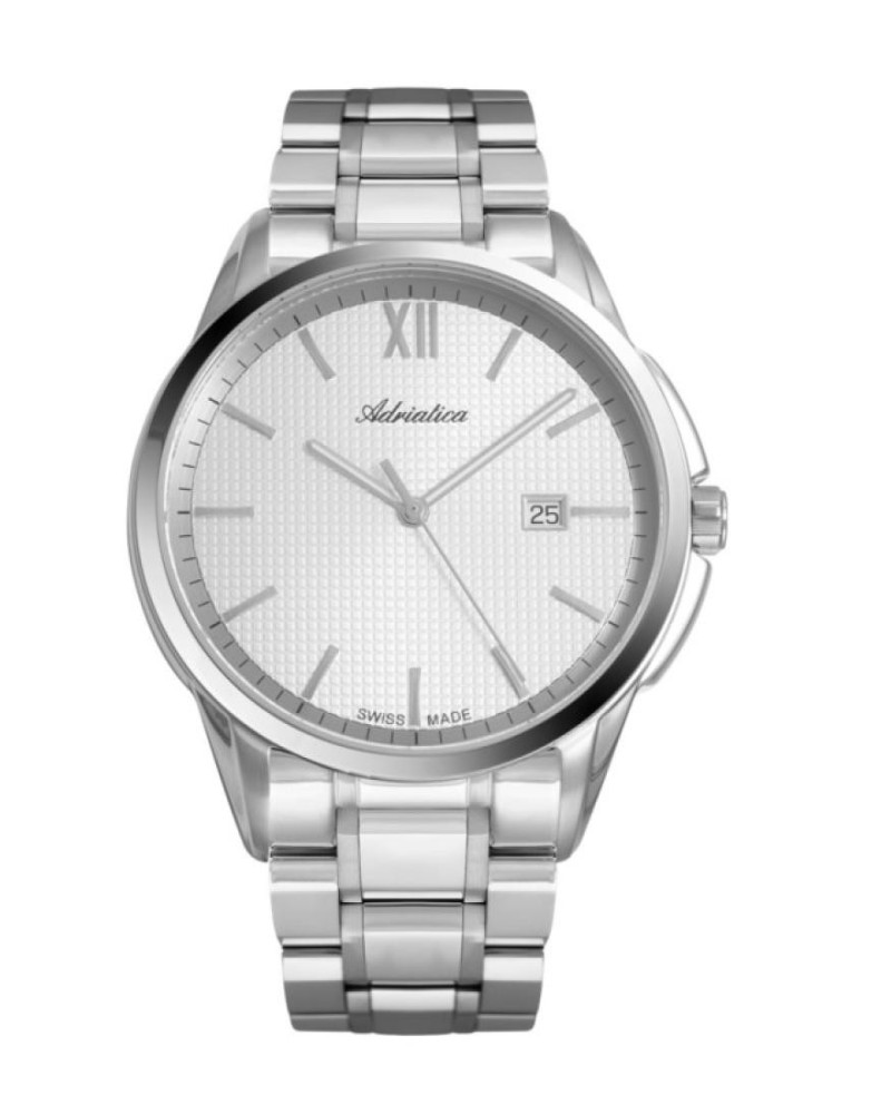 Корпус диаметром 45 мм и браслет выполнены из нержавеющей стали 316L. Часы кварцевые. Стекло сапфировое. Циферблат серебристого цвета. Стрелки часов покрыты люминесцентным составом, что обеспечивает их свечение в темноте. Водозащита 50 метров. Функции: часы, минуты, секунды, дата.