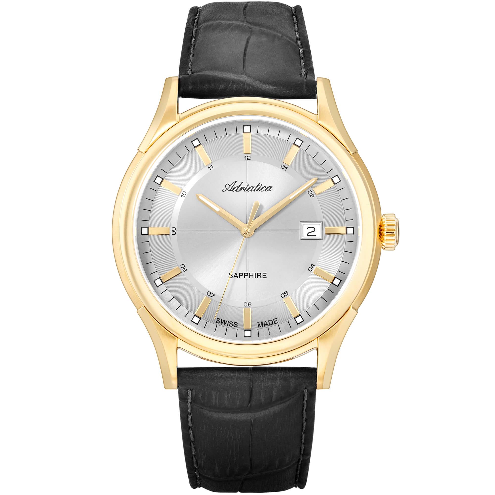 Корпус диаметром 42 мм выполнен из нержавеющей стали 316L с PVD-покрытием золотого цвета. Часы кварцевые. Стекло сапфировое. Циферблат серого цвета. Стрелки и метки часов покрыты люминесцентным составом,что обеспечивает их свечение в темноте. Черный кожаный ремень. Водозащита 50 метров. Функции: часы, минуты, секунды, дата.