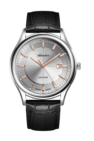 Корпус диаметром 42 мм выполнен из нержавеющей стали 316L. Часы кварцевые. Стекло сапфировое. Циферблат серого цвета. Черный кожаный ремень. Метки и стрелки часов покрыты люминесцентным составом, что обеспечивает их свечение в темноте. Водозащита 50 метров. Функции: часы, минуты, секунды, дата.