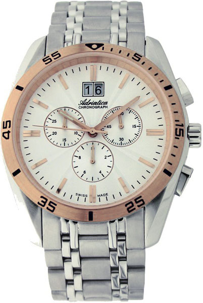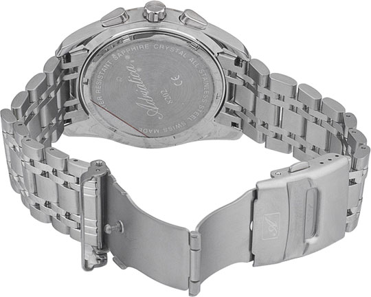 Корпус диаметром 45 мм и браслет выполнены из нержавеющей стали 316L. Часы кварцевые с хронографом. Стекло сапфировое. Циферблат серебристого цвета. Водозащита 100 метров. Функции: часы, минуты, секунды, дата, хронограф.