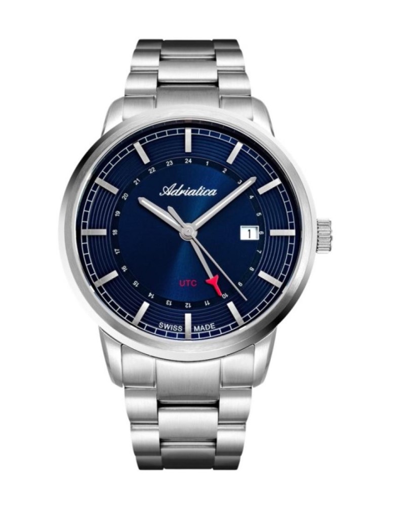 Корпус диаметром 43 мм и браслет выполнены из нержавеющей стали 316L. Часы кварцевые. Стекло cапфировое. Синий циферблат. Стрелки часов покрыты люминесцентным составом, что обеспечивает их свечение в темноте. Водозащита 50 метров. Функции: часы, минуты, секунды, дата, второй часовой пояс.