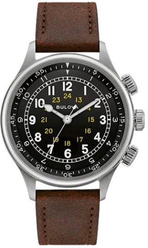 Часы Pilot A-15 созданы по мотивам военной модели 1944 года выпуска A-15 “Часы прошедшего времени” и обладают уникальными характеристиками оригинала. Корпус из нержавеющей стали с характерным черным циферблатом оснащен двумя вращающимися внутренними дисками, приводимыми в действие двумя заводными головками. Заводная головка в положении "2 часа" вращает диск прошедшим временем, в то время как заводная в положении "4 часа" вращает диск второго часового пояса. Уникальный дизайн этих часов, а также их функциональные особенности дополняются изящным автоматическим механизмом на 21 камне и 42-часовым запасом хода. Изящный коричневый кожаный ремешок с отстрочкой вверху дополняет образ. Сапфировое стекло с антибликовым покрытием. Водонепроницаемость до 30 метров. Функции: часы, минуты, секунды, индикация второго часового пояса.