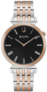 Классическая лаконичная модель Regatta от известной марки Bulova в биколорном исполнении. Тонкий корпус диаметром 38 мм и браслет изготовлены из стали 316L с элементами с PVD покрытием цвета "золото". Функции: часы, минуты.