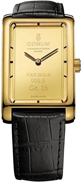 Corum Ingot - выгодная инвестиция и роскошный аксессуар в одном лице. Аристократические и лаконичные часы с циферблатом выполненым из настоящего 15-ти граммового слитка золота 999 пробы. Гармонично дополнят как классический образ одежды, так и повседневный стиль "casual". Часы оснащены механизмом с функцией автопозавода, с запасом хода 42 часа.