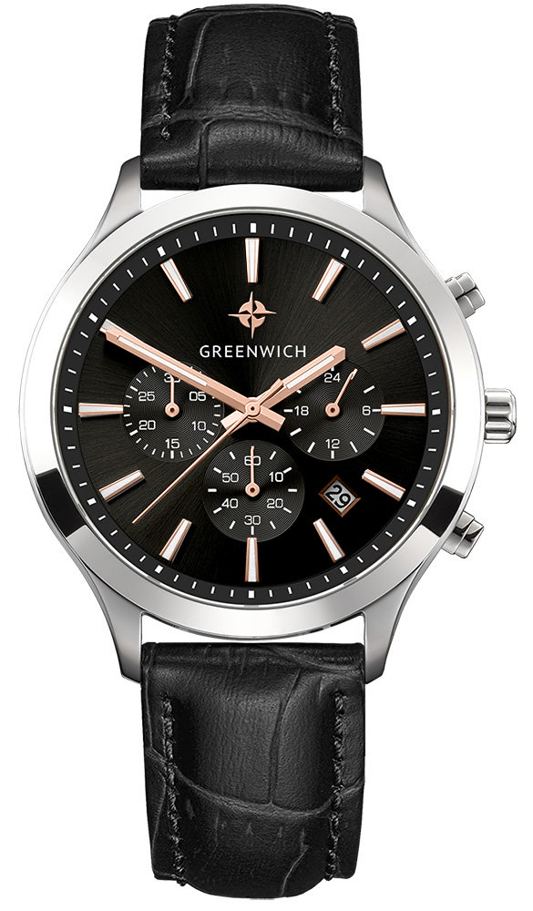 Классический хронограф серии Skipper смотрится модно и актуально. Корпус часов из гипоаллергенной нержавеющей стали хорошо подходит для ежедневного контакта с кожей. Диаметр корпуса равен 42 мм: достаточно массивный, чтобы украсить мужское запястье. Он, в тоже время, не будет доставлять неудобств, если вы наденете эти часы с рубашкой или любой другой одеждой с длинными рукавами. На читаемом циферблате черного цвета легко определить время. Вы можете воспользоваться дополнительными индикаторами: 24-х часов, даты, счетчиками минут и секунд. Стрелки и риски выделены PVD-покрытием из розового золота. В положении «5 часов» находится окошко даты. Крупные кнопки хронографа и рифленая заводная головка удобны в использовании. Надежный японский механизм обеспечивает бесперебойную работу. Повышенная водостойкость 100 метров. В часах установлено прочное минеральное стекло. Часы комплектуются черным ремешком из натуральной кожи с прошивкой в тон. На заводной головке и задней крышке расположился логотип: стилизованное изображение розы ветров. На задней крышке — гравировка корабля, плывущего навстречу приключениям. Хронограф с кварцевым механизмом — надежный и функциональный аксессуар. Совмещайте эти часы с деловым костюмом или любимыми джинсами: в любой ситуации они будут подчеркивать ваше чувство стиля.