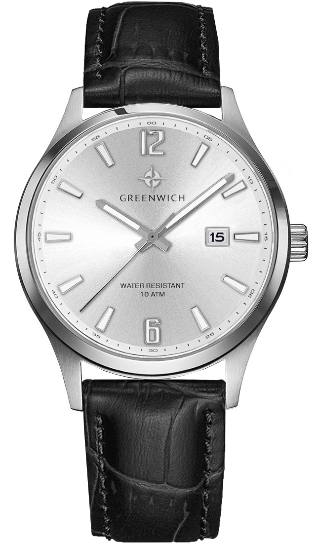 Массивный 43-миллиметровый корпус часов серии Octopus с полированным безелем сделан из гипоаллергенной нержавеющей стали. Она обладает антимагнитным эффектом, что повышает точность работы кварцевого механизма. Серебристый циферблат с полировкой вмещает крупные часовую и минутную стрелки с люминесцентным покрытием. Хорошо читается и секундная стрелка, которая отсчитывает время по специально маркированному кругу. Индикатор в положении «3 часа» показывает дату. Надежный японский механизм обеспечивает бесперебойную работу. Водостойкость часов равна 100 метрам. Модель дополняет удобный ремешок из натуральной кожи черного цвета с прошивкой. Бренд Greenwich отличается вниманием к деталям: на заводную головку и заднюю крышку нанесен логотип, стилизованное изображение розы ветров. На задней крышке — гравировка корабля, плывущего навстречу приключениям.