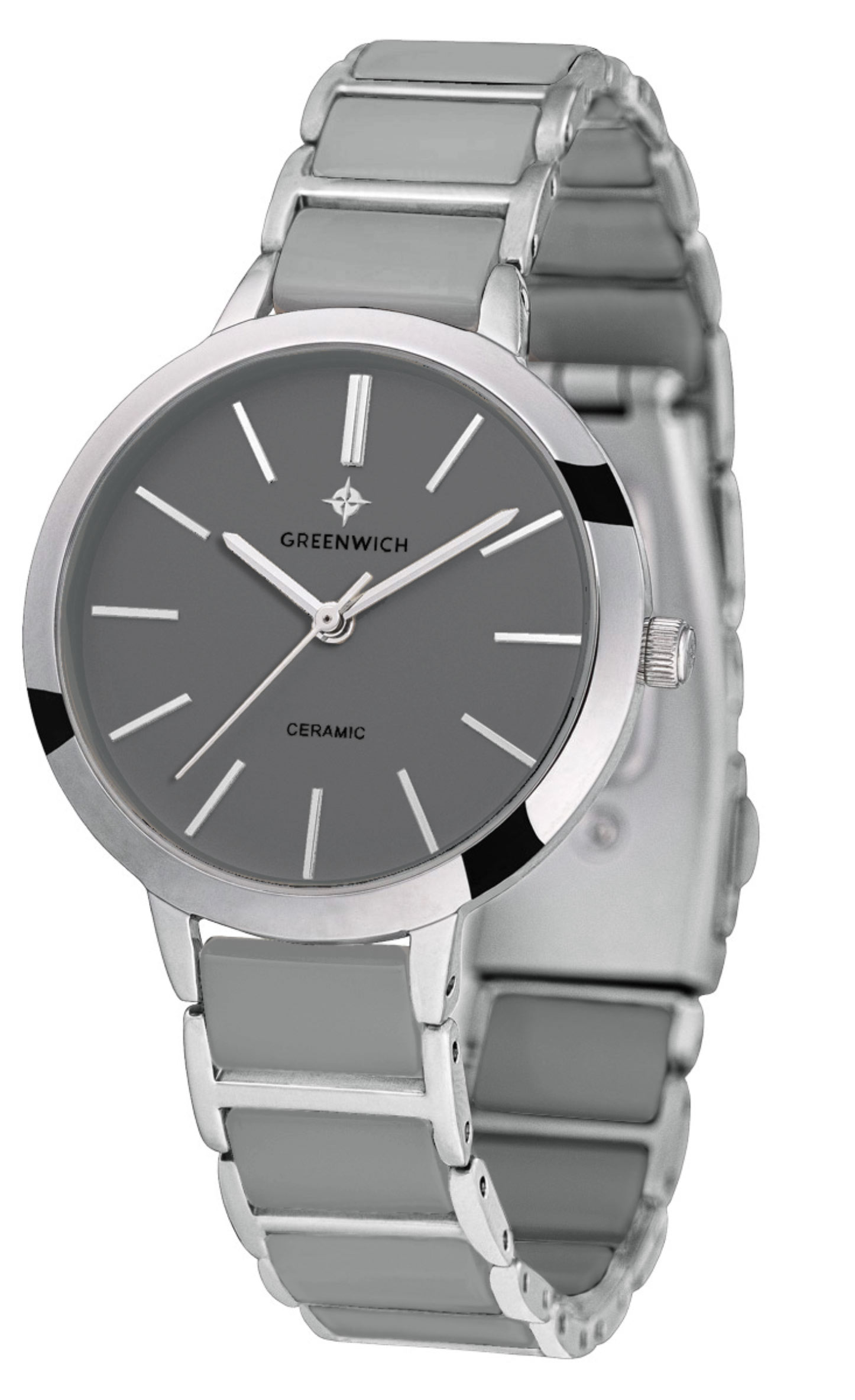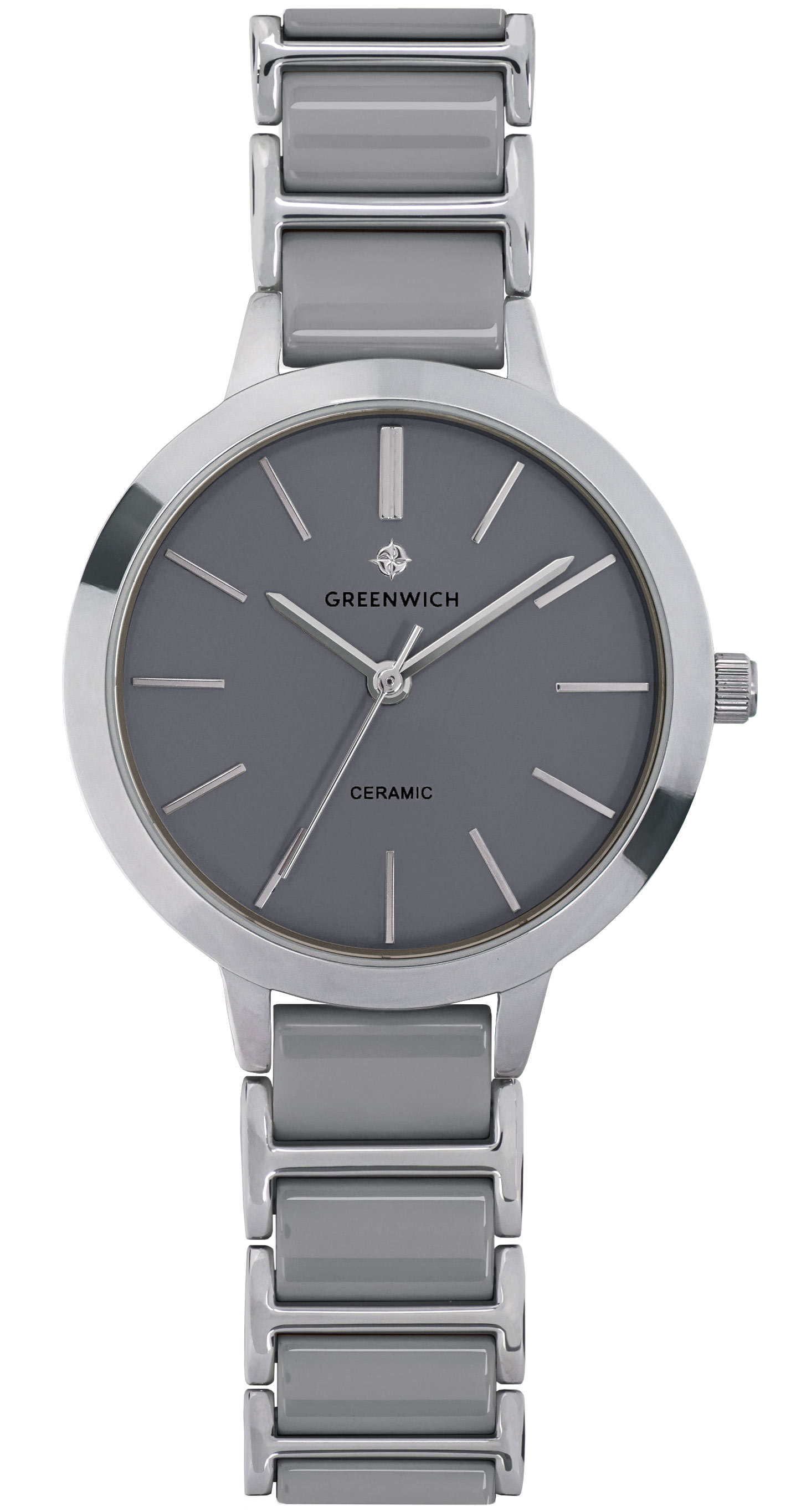 Лаконичные часы серии Fortune в круглом корпусе 32 мм из гипоаллергенной нержавеющей стали. На матовом циферблате хорошо читаются полированные риски и стрелки часов, минут и секунд – они контрастно выделяются на сером фоне. За точный ход стрелок отвечает кварцевый механизм Miyota. Звенья изящного браслета сделаны из высокотехнологичной керамики серого цвета. Часы из этого современного материала удобно носить в любую погоду: керамика быстро нагревается до комфортной температуры тела. А ее естественный блеск позволит надолго сохранить первоначальный вид часов.
