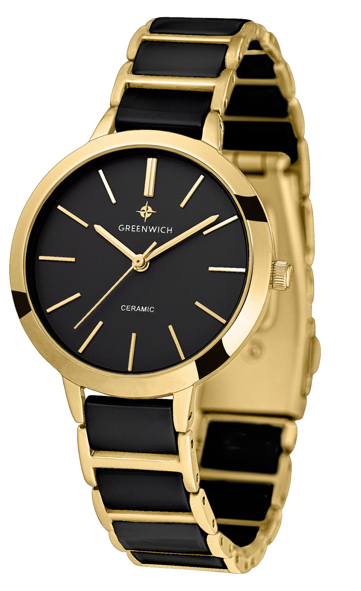 Лаконичные часы серии Fortune в круглом корпусе 32 мм из гипоаллергенной нержавеющей стали с PVD-покрытием из желтого золота. На матовом циферблате хорошо читаются полированные риски и стрелки часов, минут и секунд – они контрастно выделяются на черном фоне. За точный ход стрелок отвечает кварцевый механизм Miyota. Звенья изящного браслета сделаны из высокотехнологичной керамики черного цвета. Часы из этого современного материала удобно носить в любую погоду: керамика быстро нагревается до комфортной температуры тела. А ее естественный блеск позволит надолго сохранить первоначальный вид часов.