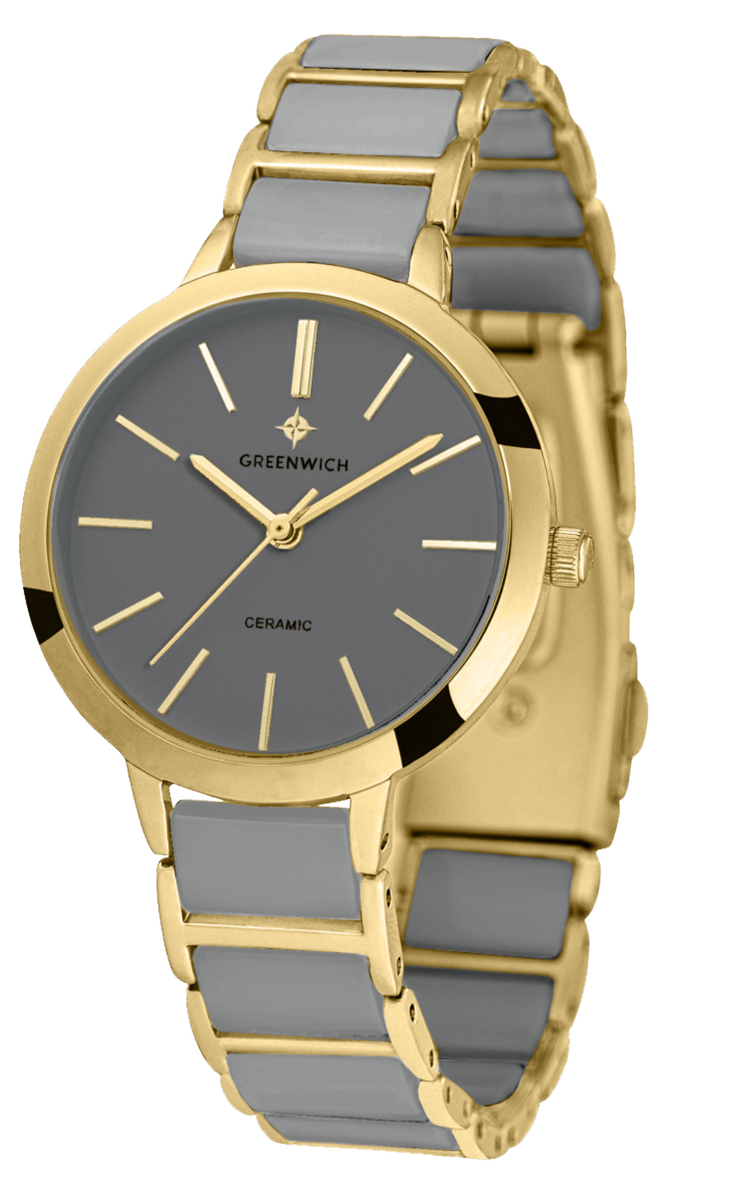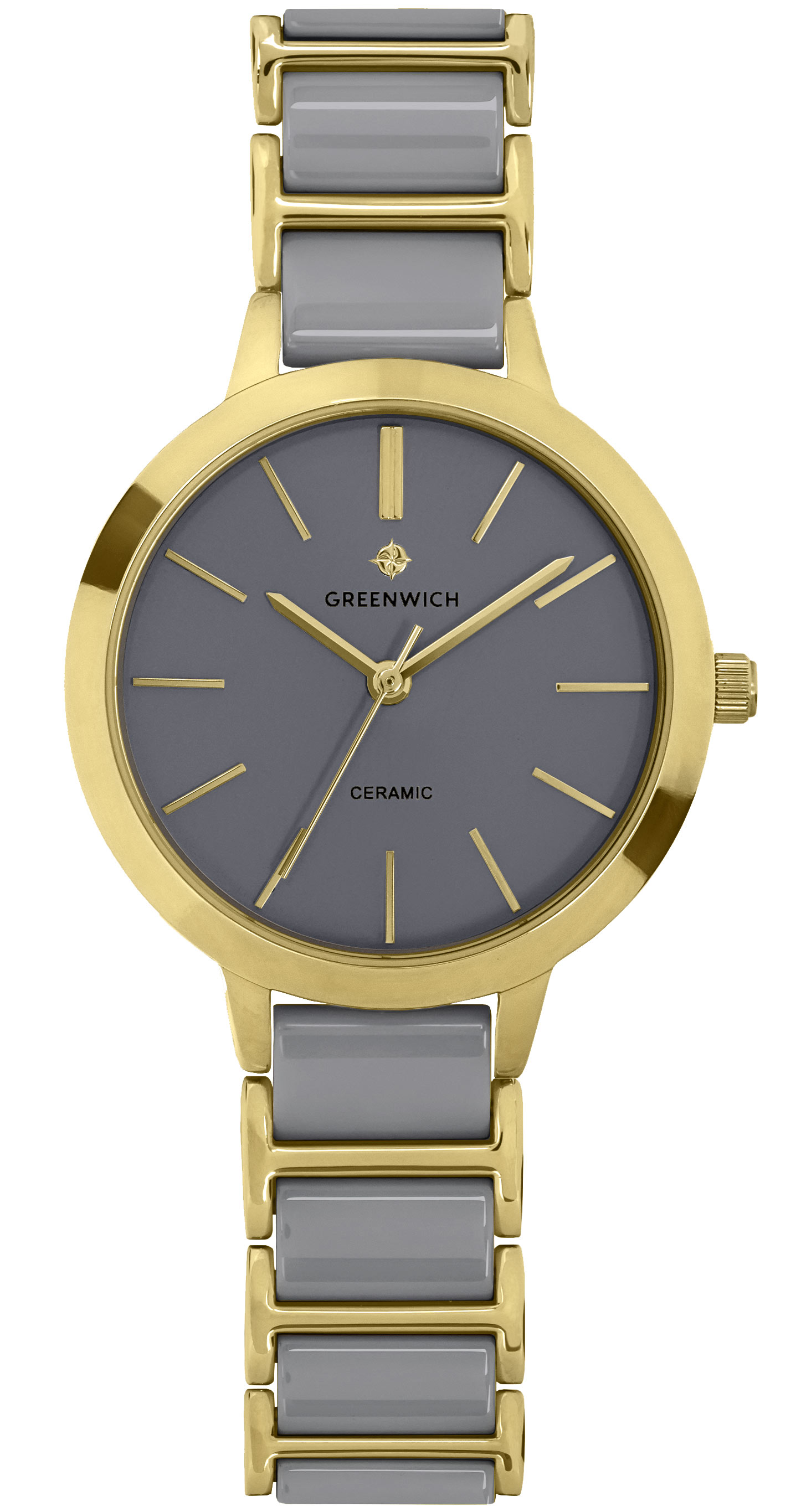 Лаконичные часы серии Fortune в круглом корпусе 32 мм из гипоаллергенной нержавеющей стали с PVD-покрытием из желтого золота. На матовом циферблате хорошо читаются полированные риски и стрелки часов, минут и секунд – они контрастно выделяются на сером фоне. За точный ход стрелок отвечает кварцевый механизм Miyota. Звенья изящного браслета сделаны из высокотехнологичной керамики серого цвета. Часы из этого современного материала удобно носить в любую погоду: керамика быстро нагревается до комфортной температуры тела. А ее естественный блеск позволит надолго сохранить первоначальный вид часов.
