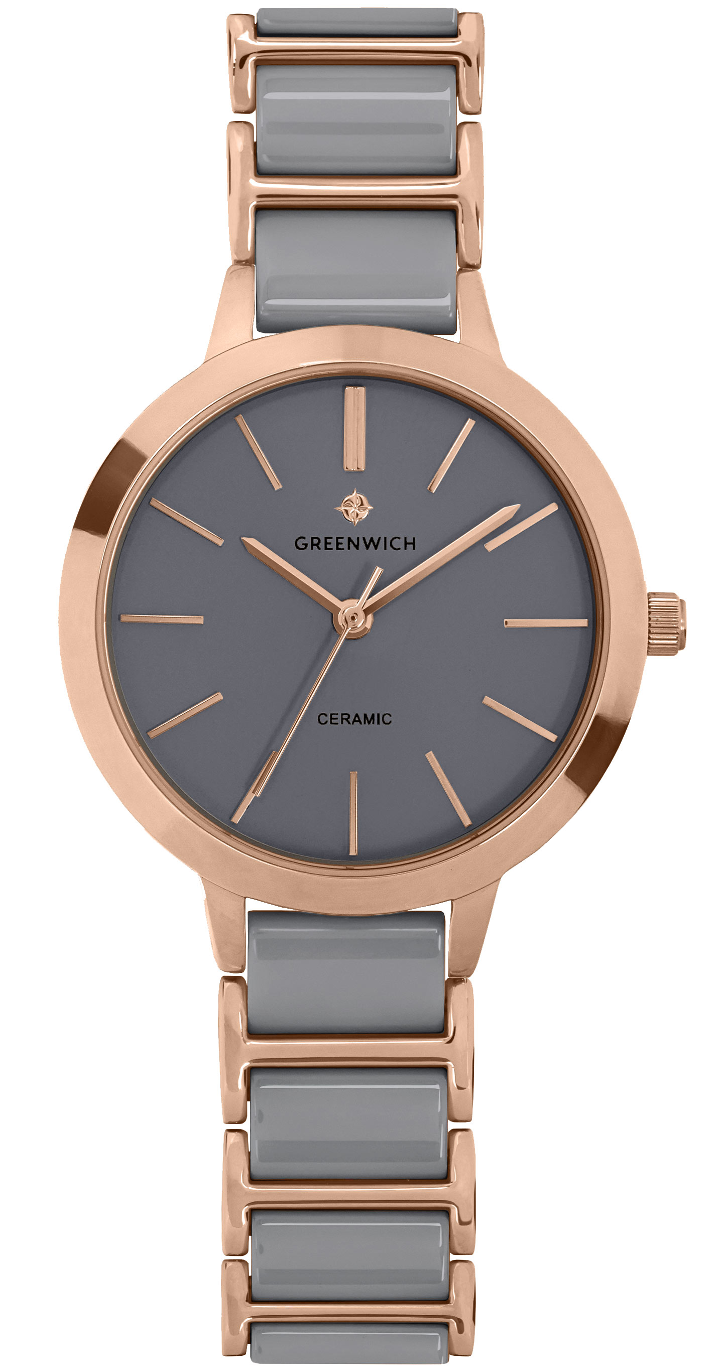 Лаконичные часы серии Fortune в круглом корпусе 32 мм из гипоаллергенной нержавеющей стали с PVD-покрытием из розового золота. На матовом циферблате хорошо читаются полированные риски и стрелки часов, минут и секунд – они контрастно выделяются на сером фоне. За точный ход стрелок отвечает кварцевый механизм Miyota. Звенья изящного браслета сделаны из высокотехнологичной керамики серого цвета. Часы из этого современного материала удобно носить в любую погоду: керамика быстро нагревается до комфортной температуры тела. А ее естественный блеск позволит надолго сохранить первоначальный вид часов.