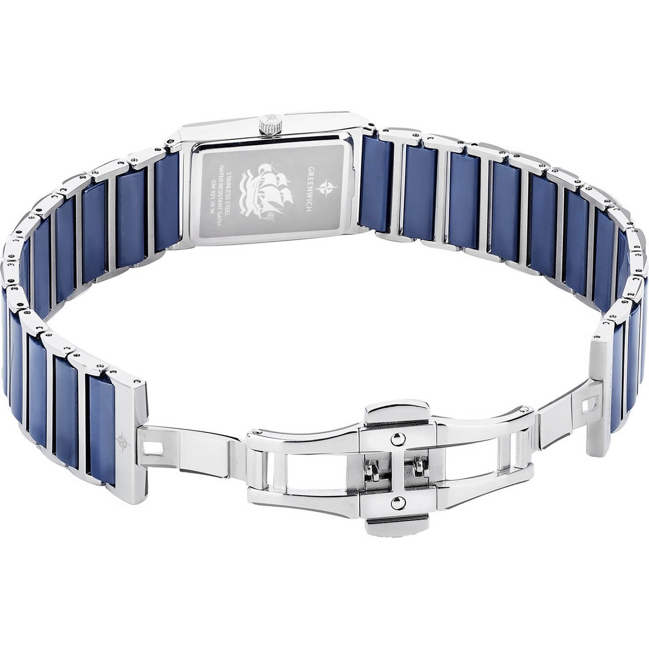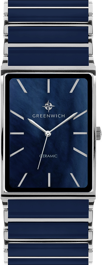 Корпус из нержавеющей стали выполнен в форме прямоугольника — стильное решение для аксессуара на каждый день, который украсит даже самое изящное запястье. Циферблат синего цвета сделан из натурального перламутра, природного материала, способного демонстрировать бесконечное количество оттенков, в зависимости от угла зрения и освещения. Риски и стрелки хорошо читаются и позволяют определить время с точностью до секунды. Стальные звенья браслета эффектно сочетаются со звеньями из высокотехнологичной керамики. Застежка-клипса с двумя боковыми кнопками, удобными в использовании, декорирована логотипом бренда. На задней крышке часов — гравировка в виде корабля, на всех парусах несущегося на встречу приключениям.