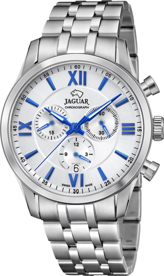 Мужские швейцарские часы JAGUAR из коллекции ACAMAR CHRONOGRAPHE. Модель J963/1 серебристого цвета с серебристым циферблатом и синими индексами обеспечивает идеальную читаемость благодаря сапфировому стеклус антибликовым покрытием. JAGUAR J963/1 - это кварцевые часы швейцарского производства с механизмом RONDA 5030D-6H1, качество и точность которого проверены годами. Они оснащены функцией хронографа, с помощью которой вы сможете измерять время с высокой точностью. Эти часы изготовлены из нержавеющей стали 316L. Этот тип стали, благодаря своему составу, особенно устойчив к коррозии и обладает высокой прочностью. Это также гипоаллергенный материал хирургического класса, что позволяет избежать возможных кожных реакций при длительном использовании. Эти часы оснащены стальным браслетом из нержавеющей стали и застежкой с двойной кнопкой, которая позволяет легко открывать и закрывать ремешок, сводя к минимуму его толщину на нижней стороне запястья. С момента своего основания в 1938 году марка часов Jaguar оставалась верна ценностям, которые подтолкнули ее основателя к созданию нового часового бренда: стремление к абсолютной красоте и прочности в каждом производимом изделии. Для достижения этой цели в Jaguar верны традициям высокоточного швейцарского часового дела, применяя самые передовые технологии, гарантирующие владельцам часов Jaguar высочайшую надежность и точность. Функции: часы, минуты, секунды, хронограф, дата.