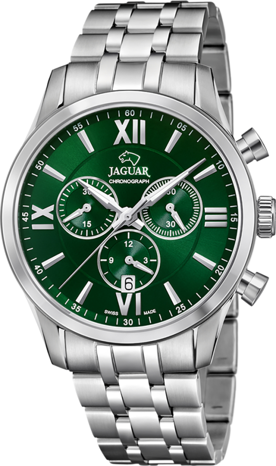 Мужские швейцарские часы JAGUAR из коллекции ACAMAR CHRONOGRAPHE. Модель J963/3 зеленлго цвета с зеленым циферблатом и серебряными индексами обеспечивает идеальную читаемость благодаря сапфировому стеклу с антибликовым покрытием. JAGUAR J963/3 - это кварцевые часы швейцарского производства с механизмом RONDA 5030D-6H1, качество и точность которого были проверены годами. Они оснащены функцией хронографа, с помощью которой вы сможете измерять время с высокой точностью. Эти часы изготовлены из нержавеющей стали 316L Этот тип стали, благодаря своему составу, особенно устойчив к коррозии, обладает высокой прочностью и устойчивостью к царапинам. Это также гипоаллергенный материал хирургического класса, что позволяет избежать возможных кожных реакций при длительном использовании. Эти часы оснащены стальным браслетом из нержавеющей стали и застежкой с двойной кнопкой, которая позволяет легко открывать и закрывать ремешок, сводя к минимуму его толщину на нижней стороне запястья. С момента своего основания в 1938 году марка часов Jaguar оставалась верна ценностям, которые подтолкнули ее основателя к созданию нового часового бренда: стремление к абсолютной красоте и прочности в каждом производимом изделии. Для достижения этой цели в Jaguar верны традициям высокоточного швейцарского часового дела, применяя самые передовые технологии, гарантирующие владельцам часов Jaguar высочайшую надежность и точность. Функции: часы, минуты, секунды, дата,хронограф.
