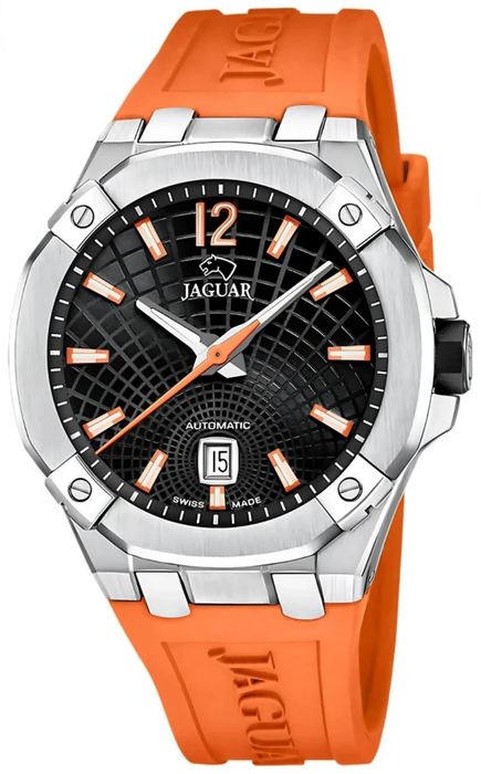 Мужские швейцарские часы JAGUAR из коллекции DIPLOMATIC. Модель J1030/1 с черным циферблатом и оранжевыми индексами обеспечивает идеальную читаемость благодаря сапфировому стеклу с антибликовым покрытием. JAGUAR J1030/1 - это механические часы швейцарского производства с механизмом SOPROD NEWTON с хода 44 часа. Функции:часы, минуты,секунды, дата. Эти часы изготовлены из нержавеющей стали 316L. Этот тип стали, благодаря своему составу, особенно устойчив к коррозии и отличается высокой прочностью. Это также гипоаллергенный материал хирургического класса, что позволяет избежать возможных кожных реакций при длительном использовании. С момента своего основания в 1938 году марка часов Jaguar оставалась верна ценностям, которые подтолкнули ее основателя к созданию нового часового бренда: стремление к абсолютной красоте и прочности в каждом производимом изделии. Для достижения этой цели в Jaguar верны традициям высокоточного швейцарского часового дела, применяя самые передовые технологии, гарантирующие владельцам часов Jaguar высочайшую надежность и точность. Функции: часы, минуты, секунды, дата.