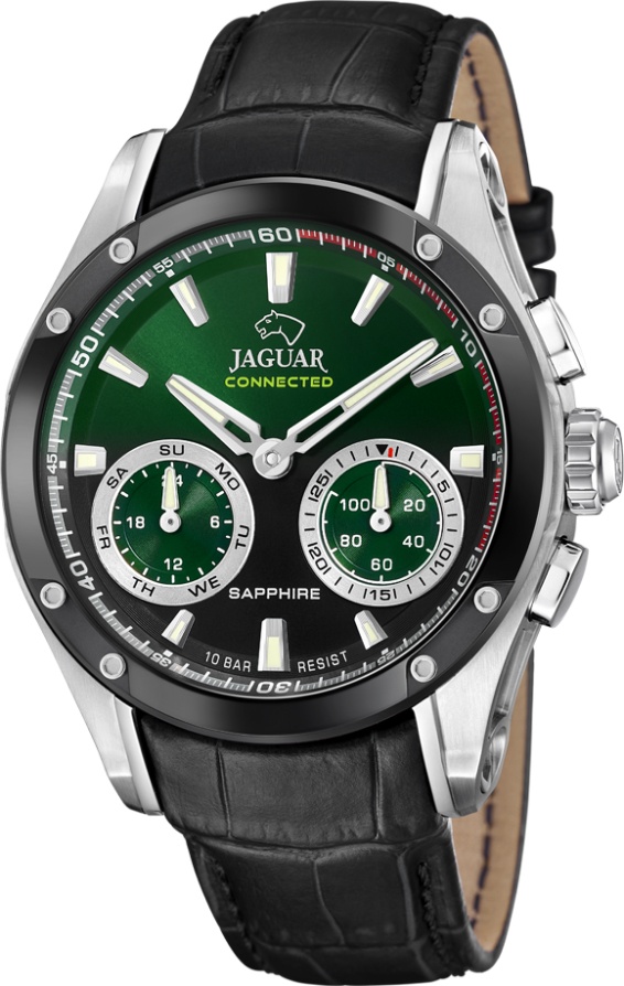 Мужские швейцарские часы JAGUAR из коллекции CONNECTED MEN. Модель J958/2 с зеленым циферблатом и серебряными индексами обеспечивает идеальную читаемость благодаря сапфировому стеклу с антибликовым покрытием. JAGUAR J958/2 - это гибридные часы. Благодаря технологии Jaguar connected, эти часы способны предложить своему владельцу интеллектуальные функции. Эти часы изготовлены из нержавеющей стали 316L. Этот тип стали, благодаря своему составу, особенно устойчив к коррозии и обладает высокой прочностью. Это также гипоаллергенный материал хирургического класса, что позволяет избежать возможных кожных реакций при длительном использовании. Эти часы оснащены черным кожаным ремешком и застежкой с двойной кнопкой, которая позволяет легко открывать и закрывать ремешок, минимизируя при этом его толщину на нижней стороне запястья. С момента своего основания в 1938 году марка часов Jaguar оставалась верна ценностям, которые подтолкнули ее основателя к созданию нового часового бренда: стремление к абсолютной красоте и прочности в каждом производимом изделии. Для достижения этой цели в Jaguar верны традициям высокоточного швейцарского часового дела, применяя самые передовые технологии, гарантирующие владельцам часов Jaguar высочайшую надежность и точность. Функции: часы, минуты, хронограф, дата, день недели, второй часовой пояс, синхронизация со смартфоном по сети Bluetooth, фильтр оповещений и звонков, поиск местоположения часов/смартфона и другие.