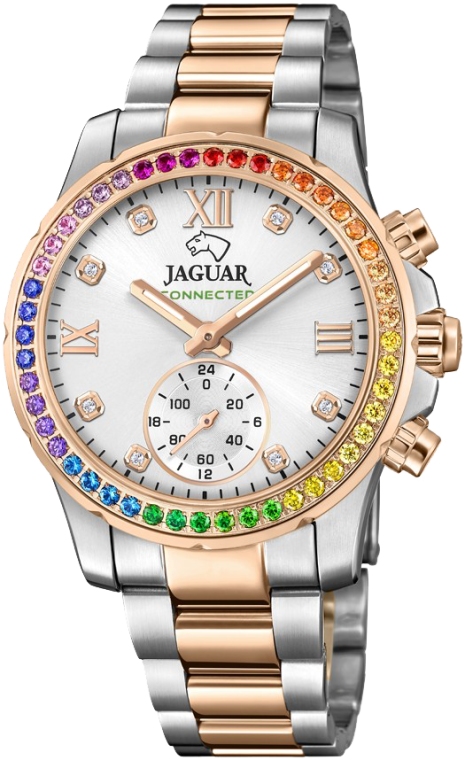 Женские швейцарские часы JAGUAR из коллекции CONNECTED LADY. Модель J981/4 серебристого цвета с серебряным циферблатом и циркониевыми индексами обеспечивает идеальную читаемость благодаря сапфировому стеклу с антибликовым покрытием. JAGUAR J981/4 - это гибридные часы. Благодаря технологии Jaguar connected, эти часы способны предложить своему владельцу интеллектуальные функции. Эти часы изготовлены из нержавеющей стали 316L. Этот тип стали, благодаря своему составу, особенно устойчив к коррозии и отличается высокой прочностью. Это также гипоаллергенный материал хирургического класса, что позволяет избежать возможных кожных реакций при длительном использовании. Эти часы оснащены двухцветным браслетом из нержавеющей стали и раскладывающейся застежкой, которая позволяет легко и точно регулировать размер ремешка, чтобы часы наилучшим образом сидели на вашем запястье. С момента своего основания в 1938 году марка часов Jaguar оставалась верна ценностям, которые подтолкнули ее основателя к созданию нового часового бренда: стремление к абсолютной красоте и прочности в каждом производимом изделии. Для достижения этой цели в Jaguar верны традициям высокоточного швейцарского часового дела, применяя самые передовые технологии, гарантирующие владельцам часов Jaguar высочайшую надежность и точность. Функции: часы, минуты, хронограф, дата, день недели, второй часовой пояс, синхронизация со смартфоном по сети Bluetooth, фильтр оповещений и звонков, поиск местоположения часов/смартфона и другие.