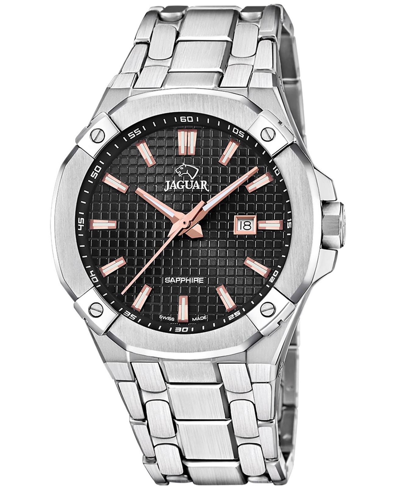 Мужские швейцарские часы JAGUAR из коллекции DIPLOMATIC. Модель J1009/4 с черным циферблатом и розовыми индексами обеспечивает идеальную читаемость благодаря сапфировому стеклу с антибликовым покрытием. JAGUAR J1009/4 - это кварцевые часы швейцарского производства с механизмом RONDA 705, качество и точность которого проверены годами и который с высокой надежностью показывает часы, минуты и секунды. Эти часы изготовлены из нержавеющей стали 316L. Этот тип стали, благодаря своему составу, особенно устойчив к коррозии и отличается высокой прочностью. Это также гипоаллергенный материал хирургического класса, что позволяет избежать возможных кожных реакций при длительном использовании. Эти часы оснащены серебристым браслетом из нержавеющей стали и застежкой с двумя кнопками, которая позволяет легко открывать и закрывать ремешок, сводя к минимуму его толщину на нижней стороне запястья. С момента своего основания в 1938 году марка часов Jaguar оставалась верна ценностям, которые подтолкнули ее основателя к созданию нового часового бренда: стремление к абсолютной красоте и прочности в каждом производимом изделии. Для достижения этой цели в Jaguar верны традициям высокоточного швейцарского часового дела, применяя самые передовые технологии, гарантирующие владельцам часов Jaguar высочайшую надежность и точность. Функции: часы, минуты, секунды, дата.