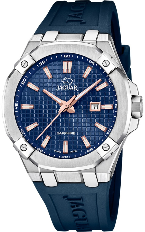 Мужские швейцарские часы JAGUAR из коллекции DIPLOMATIC. Модель J1010/2 с синим циферблатом и розовыми индексами обеспечивает идеальную читаемость благодаря сапфировому стеклу с антибликовым покрытием. JAGUAR J1010/2 - это кварцевые часы швейцарского производства с механизмом RONDA 705, качество и точность которого проверены годами и который с высокой надежностью показывает часы, минуты и секунды. Эти часы изготовлены из нержавеющей стали 316L. Этот тип стали, благодаря своему составу, особенно устойчив к коррозии и обладает высокой прочностью. Это также гипоаллергенный материал хирургического класса, что позволяет избежать возможных кожных реакций при длительном использовании. Эти часы оснащены синим каучуковым ремешком и классической застежкой-пряжкой - идеальной системой крепления кожаного ремешка, которая гарантирует, что часы всегда будут надежно закреплены на месте С момента своего основания в 1938 году марка часов Jaguar оставалась верна ценностям, которые подтолкнули ее основателя к созданию нового часового бренда: стремление к абсолютной красоте и прочности в каждом производимом изделии. Для достижения этой цели в Jaguar верны традициям высокоточного швейцарского часового дела, применяя самые передовые технологии, гарантирующие владельцам часов Jaguar высочайшую надежность и точность. Функции: часы, минуты, секунды, дата.