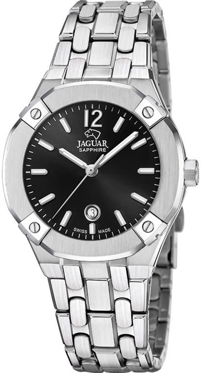 Женские швейцарские часы JAGUAR из коллекции DIPLOMATIC. Модель J1016/3 с черным циферблатом и серебряными индексами обеспечивает идеальную читаемость благодаря сапфировому стеклу с антибликовым покрытием. JAGUAR J1016/3 - это кварцевые часы швейцарского производства с механизмом HARLEY 785 , качество и точность которого проверены годами и который с высокой надежностью показывает часы, минуты и секунды. Эти часы изготовлены из нержавеющей стали 316L. Этот тип стали, благодаря своему составу, особенно устойчив к коррозии и отличается высокой прочностью. Это также гипоаллергенный материал хирургического класса, что позволяет избежать возможных кожных реакций при длительном использовании. Эти часы оснащены серебристым браслетом из нержавеющей стали и раскладывающейся застежкой, которая позволяет легко и точно регулировать размер ремешка, чтобы часы наилучшим образом сидели на вашем запястье. С момента своего основания в 1938 году марка часов Jaguar оставалась верна ценностям, которые подтолкнули ее основателя к созданию нового часового бренда: стремление к абсолютной красоте и прочности в каждом производимом изделии. Для достижения этой цели в Jaguar верны традициям высокоточного швейцарского часового дела, применяя самые передовые технологии, гарантирующие владельцам часов Jaguar высочайшую надежность и точность. Функции: часы, минуты, секунды, дата.
