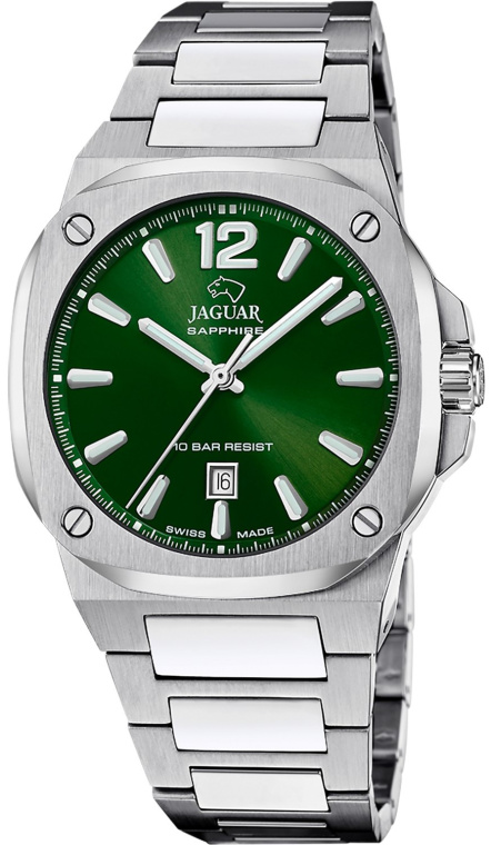 Мужские швейцарские часы JAGUAR из коллекции JAGUAR ROND CARRE. Модель J1024/2 с зеленым циферблатом и серебряными индексами обеспечивает идеальную читаемость и благодаря сапфировому стеклу. JAGUAR J1024/2 - это кварцевые часы швейцарского производства с механизмом RONDA 705, качество и точность которого проверены годами и который с высокой надежностью показывает часы, минуты и секунды. Эти часы изготовлены из нержавеющей стали 316L. Этот тип стали, благодаря своему составу, особенно устойчив к коррозии, отличается высокой прочностью. Это также гипоаллергенный материал хирургического класса, что позволяет избежать возможных кожных реакций при длительном использовании. Эти часы оснащены серебристым браслетом из нержавеющей стали и раскладывающейся застежкой, которая позволяет легко и точно регулировать размер ремешка, чтобы часы наилучшим образом сидели на вашем запястье. С момента своего основания в 1938 году марка часов Jaguar оставалась верна ценностям, которые подтолкнули ее основателя к созданию нового часового бренда: стремление к абсолютной красоте и прочности в каждом производимом изделии. Для достижения этой цели в Jaguar верны традициям высокоточного швейцарского часового дела, применяя самые передовые технологии, гарантирующие владельцам часов Jaguar высочайшую надежность и точность. Функции: часы, минуты, секунды, дата.