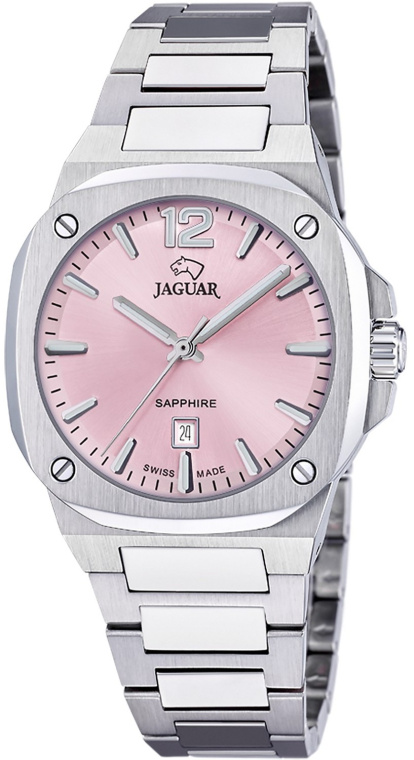 Женские швейцарские часы JAGUAR из коллекции JAGUAR ROND CARRE. Модель J1027/3 с розовым циферблатом и серебряными индексами обеспечивает идеальную читаемость благодаря сапфировому стеклу с антибликовым покрытием. JAGUAR J1027/3 - это кварцевые часы швейцарского производства с механизмом HARLEY 785 , качество и точность которого проверены годами и который с высокой надежностью показывает часы, минуты и секунды. Эти часы изготовлены из нержавеющей стали 316L. Этот тип стали, благодаря своему составу, особенно устойчив к коррозии и отличается высокой прочностью. Это также гипоаллергенный материал хирургического класса, что позволяет избежать возможных кожных реакций при длительном использовании. Эти часы оснащены серебряным браслетом из нержавеющей стали и скрытой застежкой, которая создает ощущение непрерывного, бесшовного ремешка на запястье. С момента своего основания в 1938 году марка часов Jaguar оставалась верна ценностям, которые подтолкнули ее основателя к созданию нового часового бренда: стремление к абсолютной красоте и прочности в каждом производимом изделии. Для достижения этой цели в Jaguar верны традициям высокоточного швейцарского часового дела, применяя самые передовые технологии, гарантирующие владельцам часов Jaguar высочайшую надежность и точность.