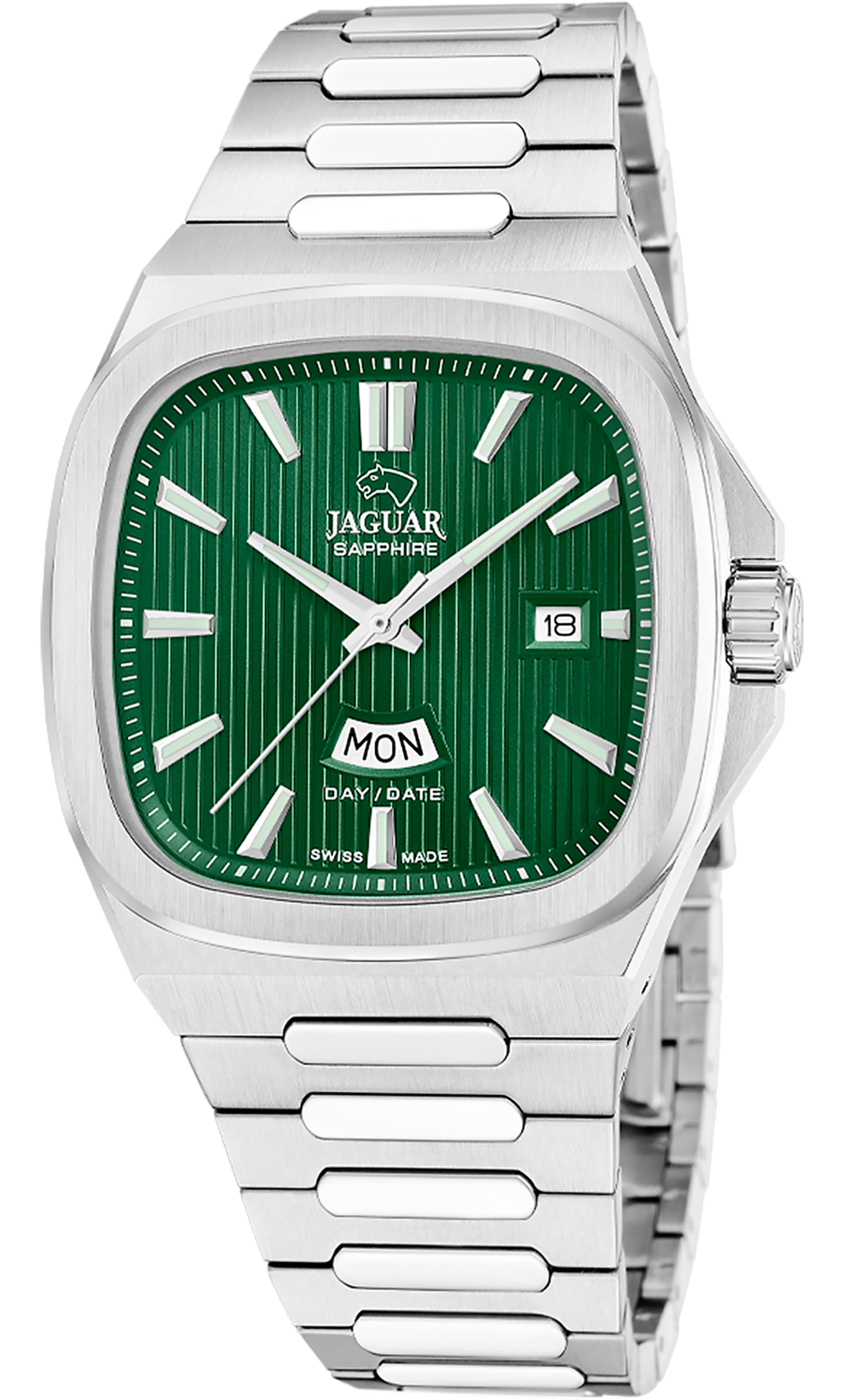 Мужские швейцарские часы JAGUAR из коллекции JAGUAR ROND CARRE. Выполненные в винтажной стилистике. Модель J1049/3 с зеленым циферблатом и серебряными индексами обеспечивает идеальную читаемость благодаря сапфировому стеклу. JAGUAR J1049/3 - это кварцевые часы швейцарского производства со швейцарским механизмом RONDA 517, который с высокой надежностью показывает часы, минуты,секунды, дату и день недели. Эти часы изготовлены из нержавеющей стали 316L. Этот тип стали, благодаря своему составу, особенно устойчив к коррозии, отличается высокой прочностью. Это также гипоаллергенный материал хирургического класса, что позволяет избежать возможных кожных реакций при длительном использовании. Эти часы оснащены серебристым браслетом из нержавеющей стали и раскладывающейся застежкой, которая позволяет легко и точно регулировать размер ремешка, чтобы часы наилучшим образом сидели на вашем запястье. С момента своего основания в 1938 году марка часов Jaguar оставалась верна ценностям, которые подтолкнули ее основателя к созданию нового часового бренда: стремление к абсолютной красоте и прочности в каждом производимом изделии. Для достижения этой цели в Jaguar верны традициям высокоточного швейцарского часового дела, применяя самые передовые технологии, гарантирующие владельцам часов Jaguar высочайшую надежность и точность. Функции: часы, минуты, секунды, дата, день недели.