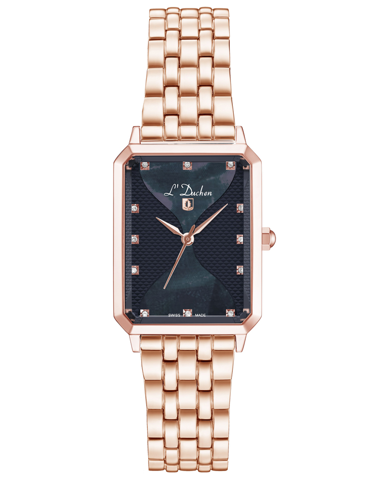 D 591.40.31 Традиционный рисунок Clous de Paris («парижские гвозди») и пластины из натурального перламутра — композиция на циферблате модели серии Pyramide напоминает очертания песочных часов, символа времени и его быстротечности. Корпус прямоугольной формы сделан из нержавеющей стали с PVD-покрытием из розового золота и зеркальной полировкой. Особое украшение модели — сапфировое стекло с гранями и волшебной игрой света на них. Маркеры часов выполнены из фианитов, надежно закрепленных на циферблате: каждый кристалл в индивидуальной рамке с полировкой, которая отражает его блеск. Для лаконичной заводной головки дизайнеры бренда выбрали удобную в использовании форму. Браслет часов и застежка-бабочка сделаны из гипоаллергенной нержавеющей стали.