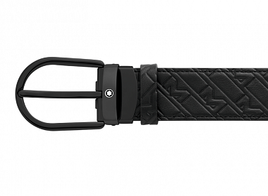 Пряжка-подкова с черным PVD-покрытием. Саморегулирующийся ремешок из черной печатной кожи с фирменным узором M. Создан для спортивного, но изысканного образа. Размер: 120 х 35 мм.