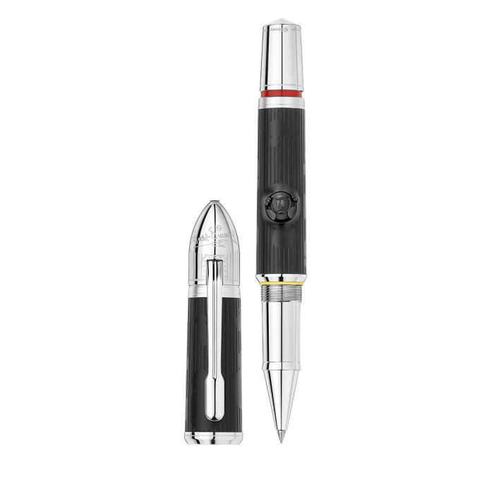 Имя Уолта Диснея в истории американских фильмов навечно связано с искусством мальтипликации. Из идеи улучшить технику мультипликационных фильмов выросла империя невообразимых размеров. Уолт Дисней родился в Чикаго в 1901 году и стал одним из самых влиятельных и самых выдающихся создателей фильмов своего времени. Ему удалось достичь таких высот благодаря стремлению к творчеству и инновациям. Форма корпуса навеяна легендарной монорельсовой железной дорогой, цвета напоминают об афише фильма «Пароходик Вилли» (1920) с Микки Маусом. На корпус и колпачок из драгоценной смолы черного цвета с матовой отделкой нанесено несколько скрытых изображений Микки Мауса, на верхушку колпачка – автограф Уолта Диснея. Значимая для ранней карьеры Диснея дата и несколько координат нанесены на верхнюю часть корпуса. Они указывают на местоположение гаража, принадлежавшего дяде Уолта Диснея, где мультипликатор со своим братом смастерил штатив для камеры.