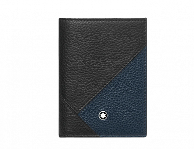 Высокое качество исполнения и кожаные вставки являются отличительными чертами этой капсульной коллекции. Эта визитница, выполненная из мягкой зернистой кожи черного и синего цветов, оснащена отделением для банкнот, карманами для кредитных карт и дополнительными карманами, что делает ее компактной и универсальной альтернативой бумажникам.