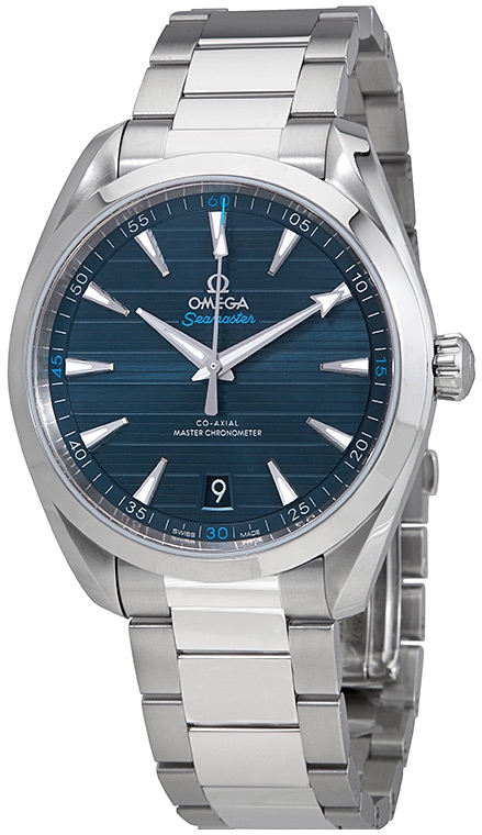 Великолепные часы Seamaster Aqua Terra воздают должное богатому морскому наследию OMEGA. Симметричный корпус этой модели диаметром 41 мм выполнен из нержавеющей стали. Задняя крышка имеет характерный дизайн с волнообразным краем. Синий циферблат с отделкой "солнечные лучи" украшает горизонтальный узор "тиковое дерево", напоминающий обшивку роскошных яхт. В положении "6 часов" располагается окошко указателя даты. Стрелки и индексы с родиевым покрытием заполнены белым люминесцентным составом Super-LumiNova. Этот сертифицированный хронометр оснащен калибром OMEGA Master Chronometer 8900. Сертификат Швейцарского федерального института метрологии (METAS) соответствует высочайшим стандартам часовой индустрии. Часы дополнены браслетом с чередованием полированных и матовых поверхностей. Запас хода 60 часов. Международная гарантия 5 лет.