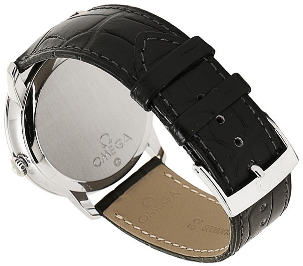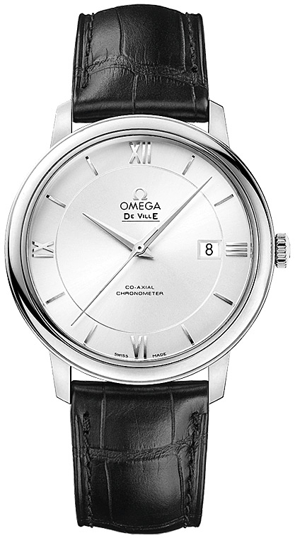 Коллекция OMEGA De Ville Prestige завоевала любовь поклонников бренда своим классическим элегантным дизайном. Входящие в нее модели отличаются чистотой линий, роскошной отделкой и вневременным дизайном. Данная модель имеет серебристый циферблат с делением на две зоны и римскими цифрами в положениях «3 часа», «6 часов», «9 часов» и «12 часов». Эффектный циферблат с окошком указателя даты в положении «3 часа» защищен устойчивым к царапинам сапфировым стеклом. Корпус диаметром 39,5 мм из нержавеющей стали с черным кожаным ремешком дополнен элегантным безелем. Основу этой модели составляет коаксиальный калибр 2500. Запас хода 48 часов. Международная гарантия 5 лет.