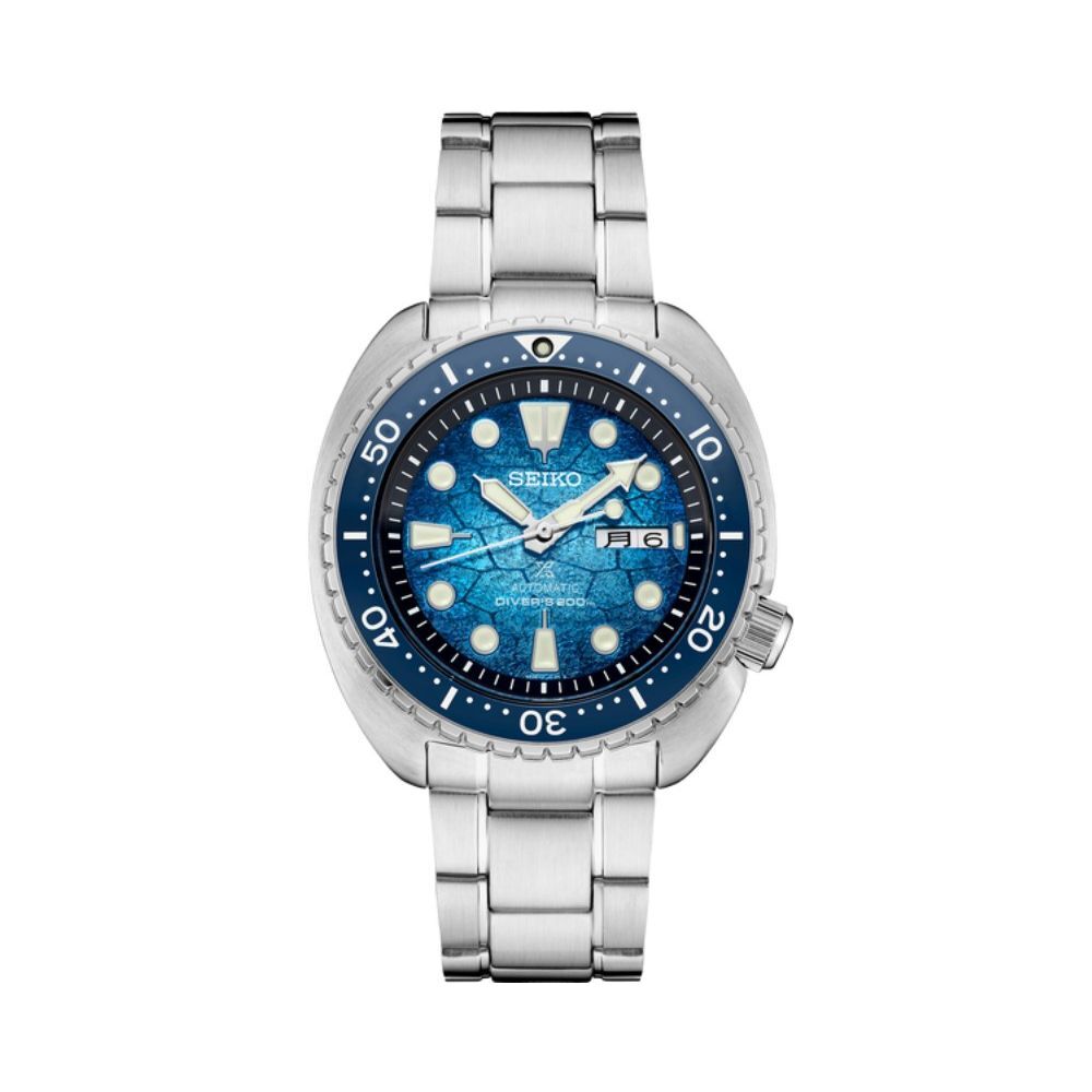 Специальный выпуск Prospex U.S. Special Edition. Это захватывающий специальный выпуск с синим циферблатом с замысловатым рисунком, вдохновленным черепашьими панцирями, посвящено постоянным усилиям Prospex по популяризации изучения океана и его охраны. Часы механические с автоподзаводом и запасом хода 41 час. Крупные стрелки и метки покрытые люминисцентным составом LumiBrite обеспечивают прекрасную читаемость при любом освещении. Изготовленные из нержавеющей стали, с устойчивым к царапинам сапфировым стеклом с антибликовым покрытием, надежной заводной головкой и специальной задней крышкой с изображением морской черепахи, эти прочные часы соответствуют стандартам ISO для погружений с аквалангом на глубину до 200 метров. В комплект входит дополнительный синий силиконовый ремешок. Функции: часы, минуты, секунды, дата, день недели.