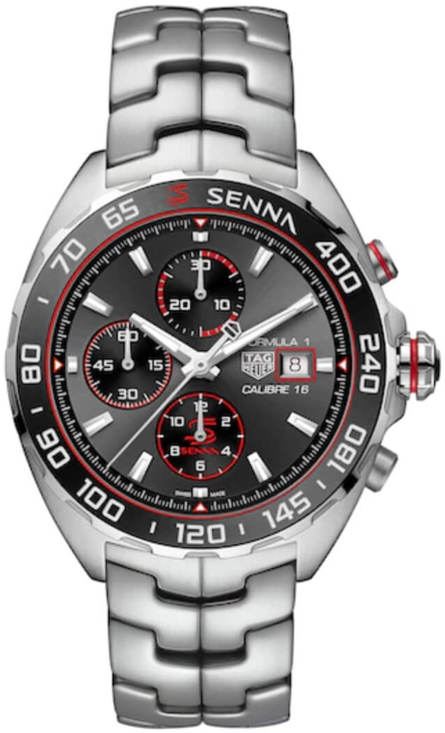 Этот автоматический хронограф диаметром 44 мм выполнен в красном цвете, подобно оригинальным часам легендарного гонщика, чей стиль послужил вдохновением для создания этой специальной серии. Еще более прочная конструкция с мощным автоматическим калибром Calibre 16 с запасом хода 42 часа. Яркая дань уважения легенде автогонок Айртону Сенне – человеку, который вызывает восхищение. Элегантный дизайн часов TAG Heuer Senna Special Edition сочетает в себе красный, антрацитовый и черный в соответствии с эстетическим кодом культового логотипа "S" Senna. Функции: часы, минуты, секунды, дата, хронограф.