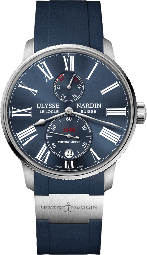 Модель Marine Chronometer Torpilleur несёт в себе богатые традиции, независимость, инновации и ДНК марки. Такие как: "Улиссовский синий цвет", римские цифры на лаконичном циферблате, титановая вставка со знаменитым логотипом марки на каучуковом браслете, мануфактурный механизм UN-118 с запасом хода 60 часов. Данная модель удобно "сидит" на запястье и гармонично дополнит образ и классического костюма, и повседневного стиля "casual". Функции: часы, минуты, секунды, дата, индикатор запаса хода.