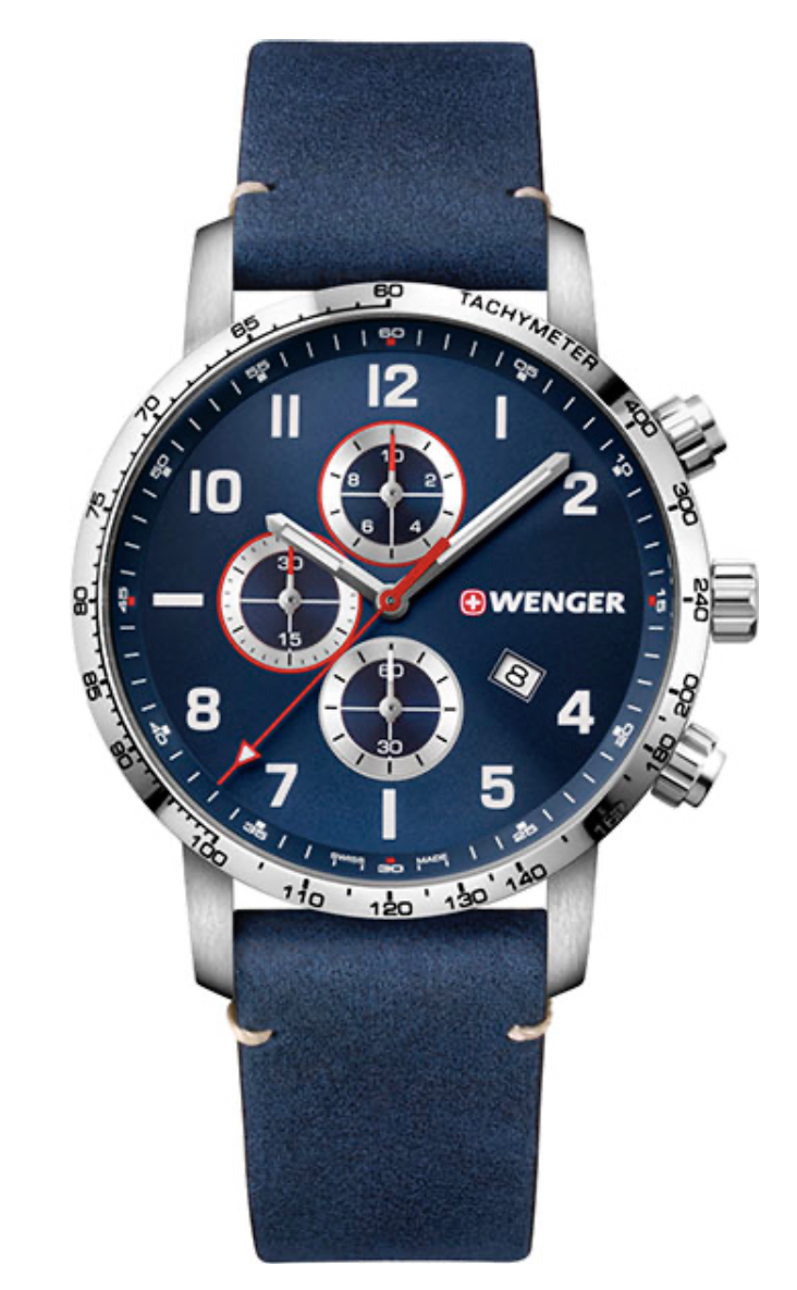 Мужские наручные часы Attitude Chrono от швейцарской часовой марки Wenger. Корпус диаметром 44 мм выполнен из нержавеющей стали 316L. Часы кварцевые с хронографом. Стекло минеральное с сапфировым покрытием. Циферблат синего цвета. Водозащита 100 метров. Синий кожаный ремень. Функции: часы, минуты, секунды, дата, хронограф, тахиметрическая шкала.